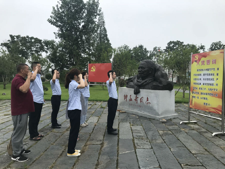 在帅孟奇同志雕塑前,党支部书记李静带领全体党员职工重温了入党誓词。“我志愿加入中国共产党,拥护党的纲领,遵守党的章程……”,回顾入党宣誓时的庄严承诺,每位党员再一次接受了心灵的洗礼,进一步坚定了理想信念和历史责任感。