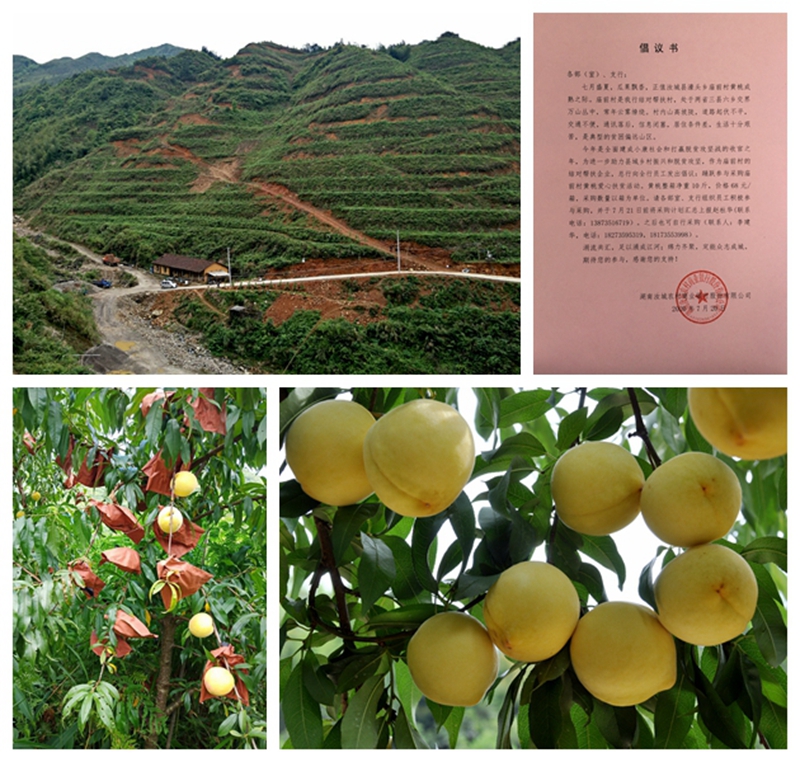 濠头乡庙前村是汝城农商银行扶贫结对帮扶村,处于两省三县六乡交界万山丛中,常年云雾缭绕。村内山高坡陡,道路起伏不平,交通不便,通讯落后,信息闭塞,居住条件差,生活十分艰苦,是典型的贫困偏远山区。黄桃基地是庙前村产业扶贫项目,是农民增收的重要来源。