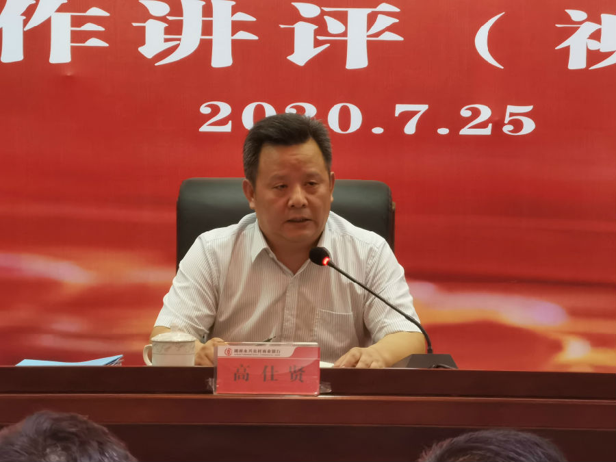 7月25日(星期六)上午,全市农商银行系统2020年上半年经营工作讲评(视频)会议在永兴农商银行召开,会议总结回顾了全市农商银行系统上半年工作,分析了当前经营形势和问题,安排部署了下阶段工作。市办事处党组书记、主任高仕贤出席会议并作重要讲话,党组成员、纪检组长、副主任陈利军主持会议,党组成员、副主任雷青龙主任作上半年经营形势分析报告。