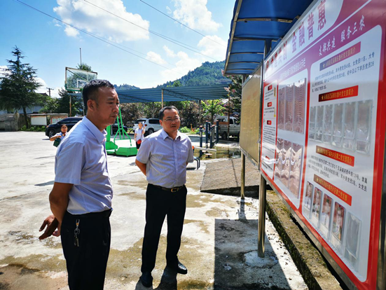 ▲永顺农商银行党委书记、董事长鲁鑫(右一)、营业部总经理张和政,检查督导党建共创、整村授信工作