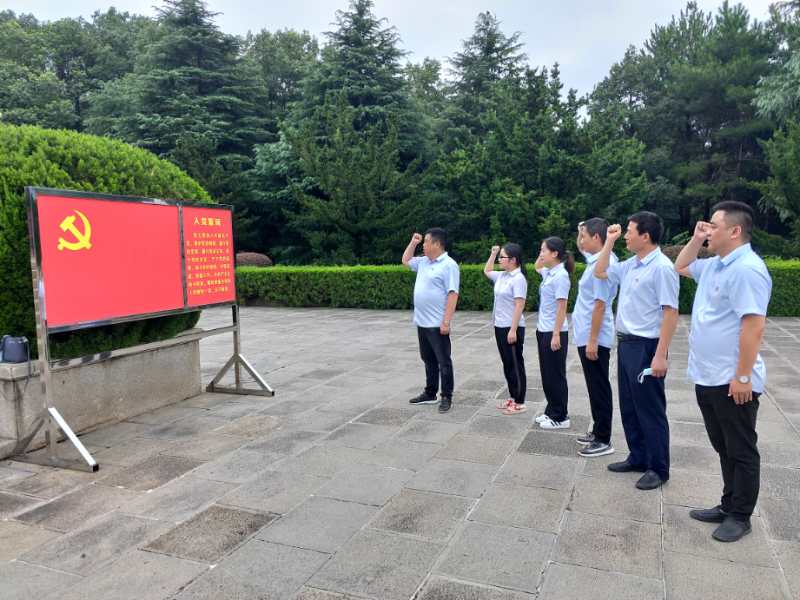 在刘少奇铜像前,党支部书记徐建国带领全体人员瞻仰了刘少奇铜像并敬献花篮,表达了对革命先辈刘少奇无限的崇敬和缅怀之情。在铜像前和飘扬的党旗下,全体党员们高举右手,重温了入党誓词,表达了对党永远忠诚的决心。