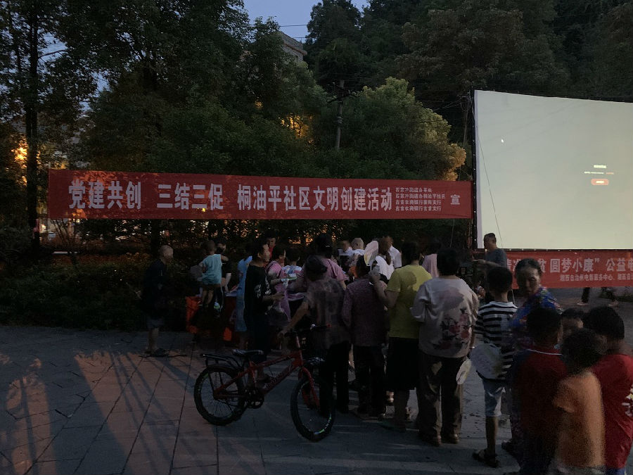 近日,正逢立秋,吉首地区在此节气内气温仍为酷热。对于很多人而言,露天电影是童年盛夏时节里难忘的记忆。为丰富社区居民的精神文化生活,以“文化惠民”回馈社会,吉首农村商业银行寨阳支行、吉首支行联合石家冲街道办桐油坪社区委员会在滨河广场开展“党建共创 三结三促 社区文明创建”活动。