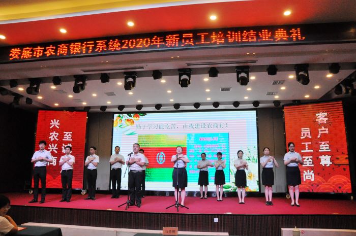 随后,大家一同观看了培训历程回顾和汇报演出。整个汇报演出以诗歌朗诵、演讲、歌舞、小品等形式,内涵丰富,声情并茂地彰显了新入职员工的青春活力和合规意识,展现了新员工扎根基层、服务三农的决心。