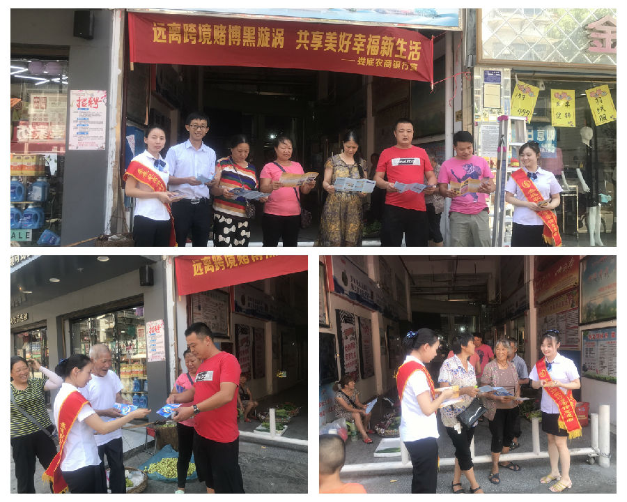 三、借力市场宣传。为提高宣传影响力,辖内支行根据自身所处环境,采取进社区、进市场的方式,向企业主、市场摊贩、个体户、农户等公众进行防赌反赌培训和防赌反赌知识宣传,通过介绍典型、现场讲述跨境赌博套路、陷阱,让群众明确赌博的危害性,同时提醒广大群众不要出租、出借、出售个人账户,要提高防范意识,掌握应对手段和方法,守护好自己的钱袋子。