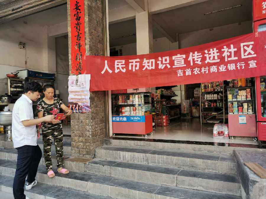 为了进一步扩大人民币知识宣传的覆盖面,维护广大人民群众的切实利益,8月期间,吉首农商银行人民币知识宣传小分队采取“流动式”宣传模式,通过走访商户、企业,走访社区、村寨家庭,力求把人民币知识带进千家万户。