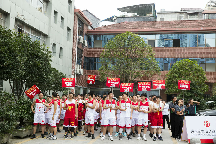 9月1日上午,“党建共创、三结三促”首届“诚信杯”篮球赛开幕式在永顺农商银行总行篮球场举行,永顺农商银行、县市场监督管理局、县个私协会、县篮球协会相关领导出席开幕式。开幕式上,永顺农商银行党委副书记、行长荆元桥致开幕词,他表示“党建共创、三结三促”没有模式可依,只有不断探索方能找准共创方向,自开展“党建共创、三结三促”行动以来,该行各项工作成果显著,取得了阶段性胜利;随后,运动员代表、裁判员代表分别上台进行宣誓;最后,县市场监督管理局局长向用法局长慷慨激昂的宣布篮球赛正式开幕。