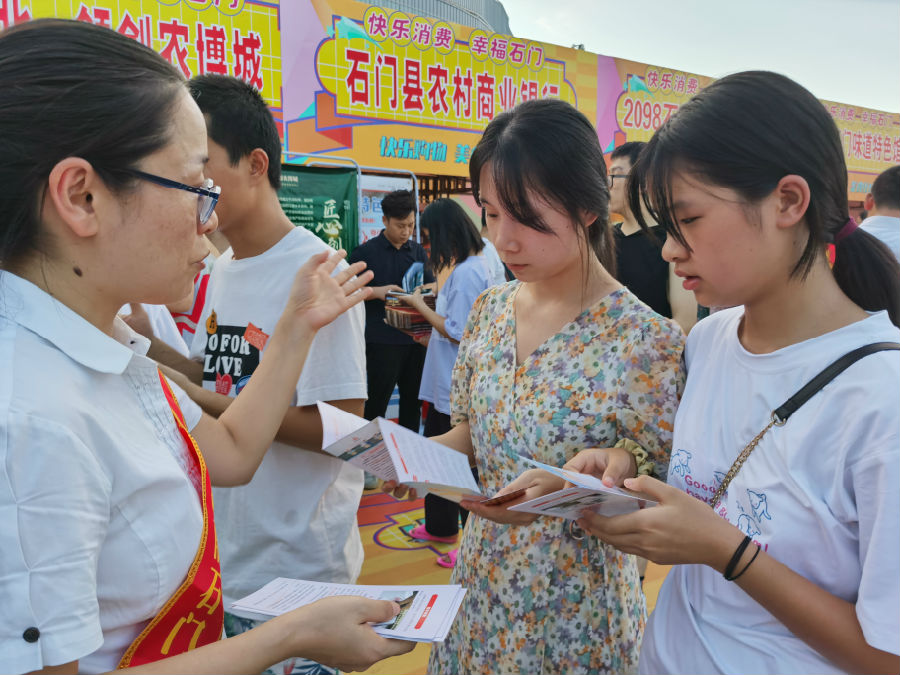 据悉,本次消费季活动由“快乐购物、快乐购车、快乐购房、快乐旅游、快乐美食”五大主活动构成。活动时间持续到10月8日,由石门县政府办负责牵头指导,县商务局、住建局、文旅广体局、人民银行石门支行、金融发展服务中心具体策划,石门农商银行冠名赞助。活动现场,石门农商银行高度重视,精心组织,抽调业务精英组成宣传小分队,通过宣传展台、折页、大型户外广告牌等多种载体,将农商银行特色产品和服务融入到活动当中,为到场的嘉宾、观众提供业务咨询和快贷预约服务,派发定制礼袋、矿泉水、纸巾等服务保障品,并借助微信直播对“普惠金融特色贷”八大新产品进行推介,在全力为客户提供更加便捷、高效的服务的同时,让惠民暖企政策深入人心,促进扩大县域消费,助力经济回暖,打响了“有温度的百姓银行”农商品牌。