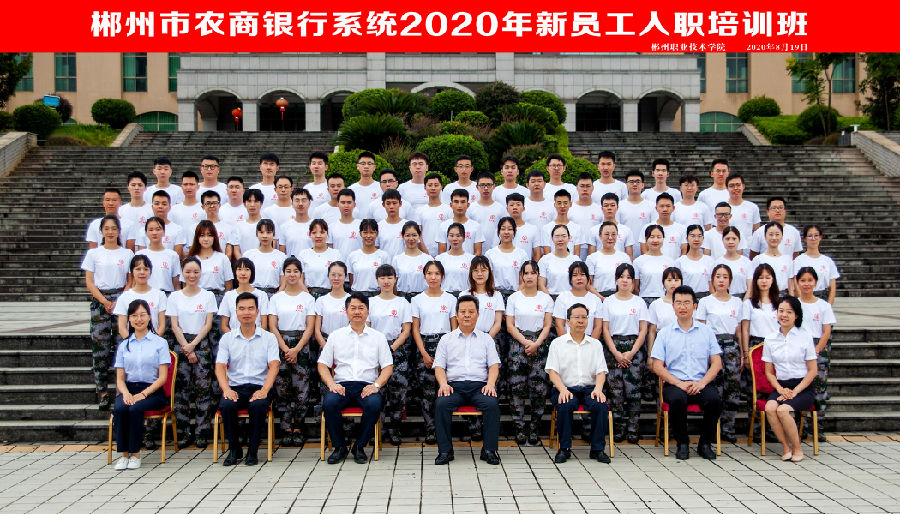 近日,郴州农商银行系统2020年新员工入职培训班在郴州职业技术学院正式开班,来自全市10家农商银行的73名新员工正式开启为期24天的入职培训。市办事处党组书记、主任高仕贤出席开班仪式并作重要讲话,党组成员、纪检组长、副主任陈利军主持仪式,党组成员、副主任雷青龙出席仪式。