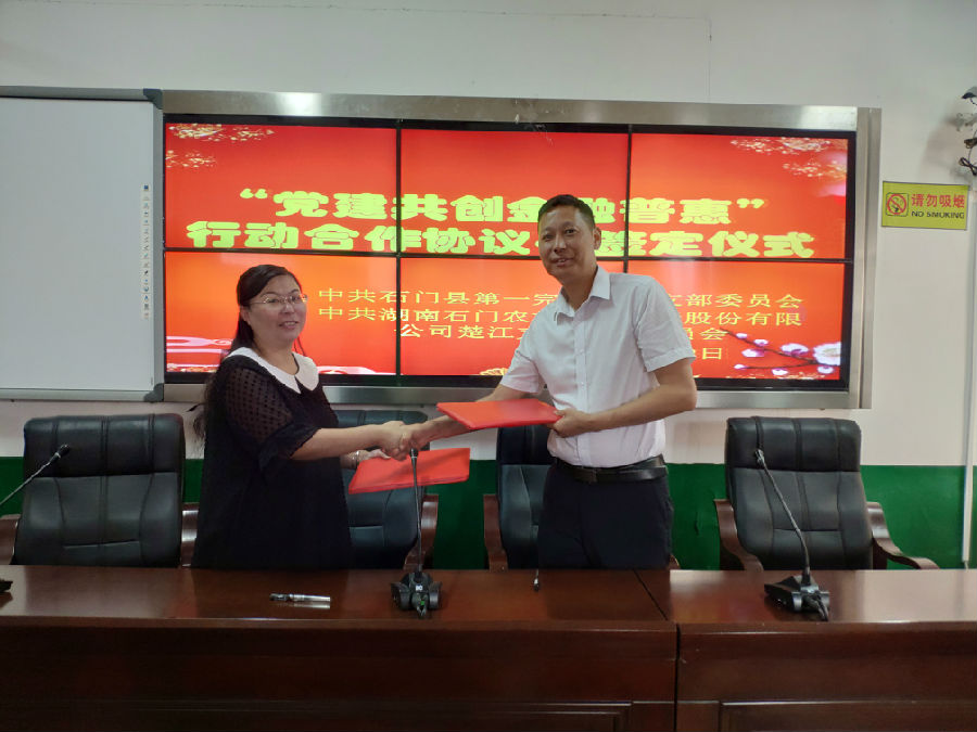 据悉,“党建共创、金融普惠”行动开展以来,为创造良好的外部发展环境,石门农商银行认真落实“三级共建”策略,从党委、党支部、党员三个层面加强与外部的互联互通、资源共享,打造新型的政银关系。主动深入农村基层治理体系,加强与学校、重点市场(园区)、新型农村经营组织和行业协会等组织共建,开展相关金融活动,为普惠金融打通渠道,促进业务融合发展。截至2020年8月末,该行党委与服务的22个乡镇(街道)党委均签订了合作协议,与331个行政村(社区)党支部签订了合作协议。