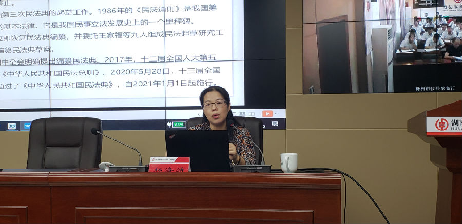会上,湖南工业大学法学院杨海涌副教授详细介绍了《民法典》出台的历史进程、现实意义,重点分析了《民法典》新规对银行信贷业务的影响,并提出了应对措施,对促进农商银行高质量发展具有指导意义。