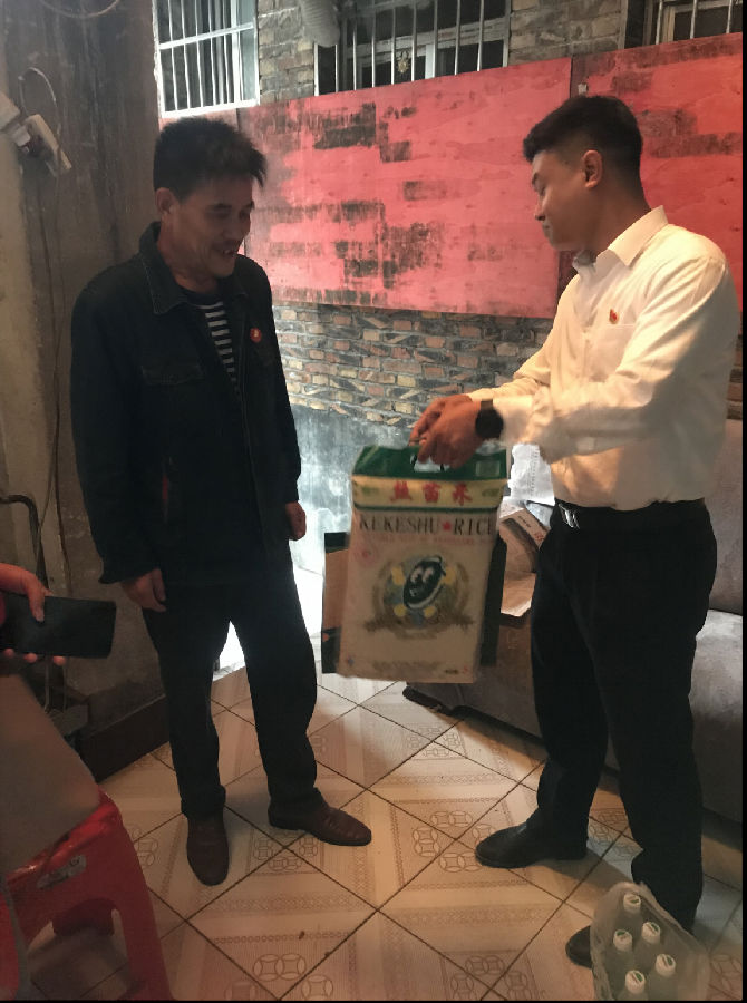在走访过程中,党员干部为困难户送去了米、月饼等五十余份生活用品,与他们亲切交谈,仔细了解他们生活近况、身体状况和家庭情况,同时鼓励他们要积极乐观面对生活,并为他们送上真挚的节日问候。社区五保户83岁的石秀花无儿无女,当党员同志将慰问品送到她手上时,她开心地说:“真是谢谢你们!你们真是社会的好心人,你们那么忙还惦记着我,特别到了逢年过节,都会带上慰问品来,我都80多岁了,有你们的陪伴,我一点都不觉得孤单。”
