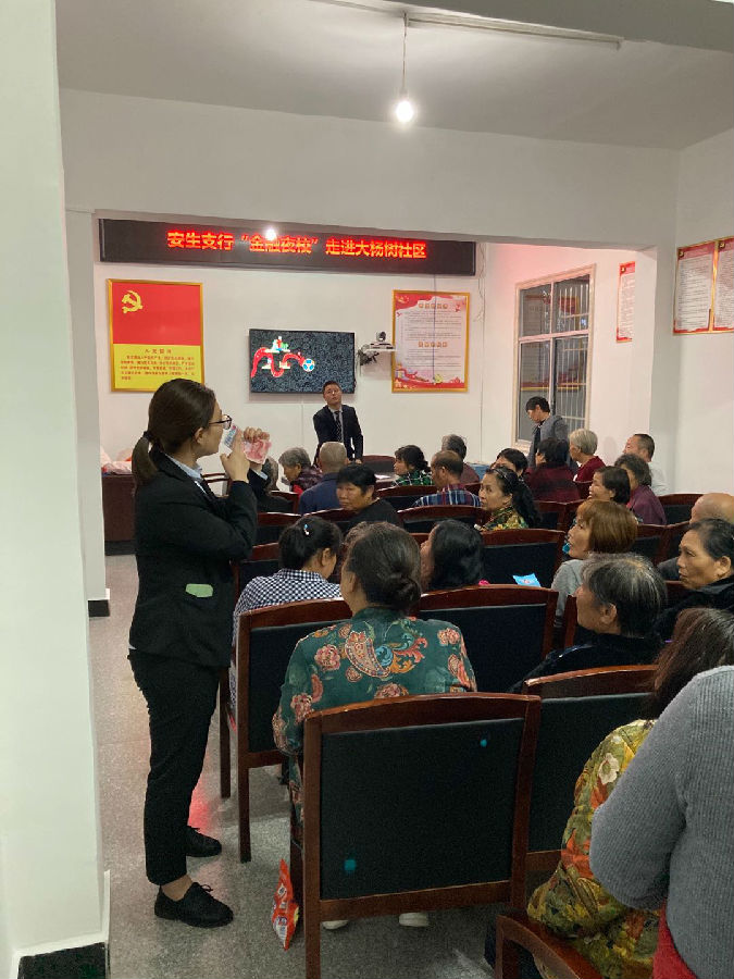 为进一步提升农村地区村民金融素养和防骗意识,持续优化辖内金融环境,近日,安生支行首期“金融夜校”在官垱镇大杨树社区开讲。