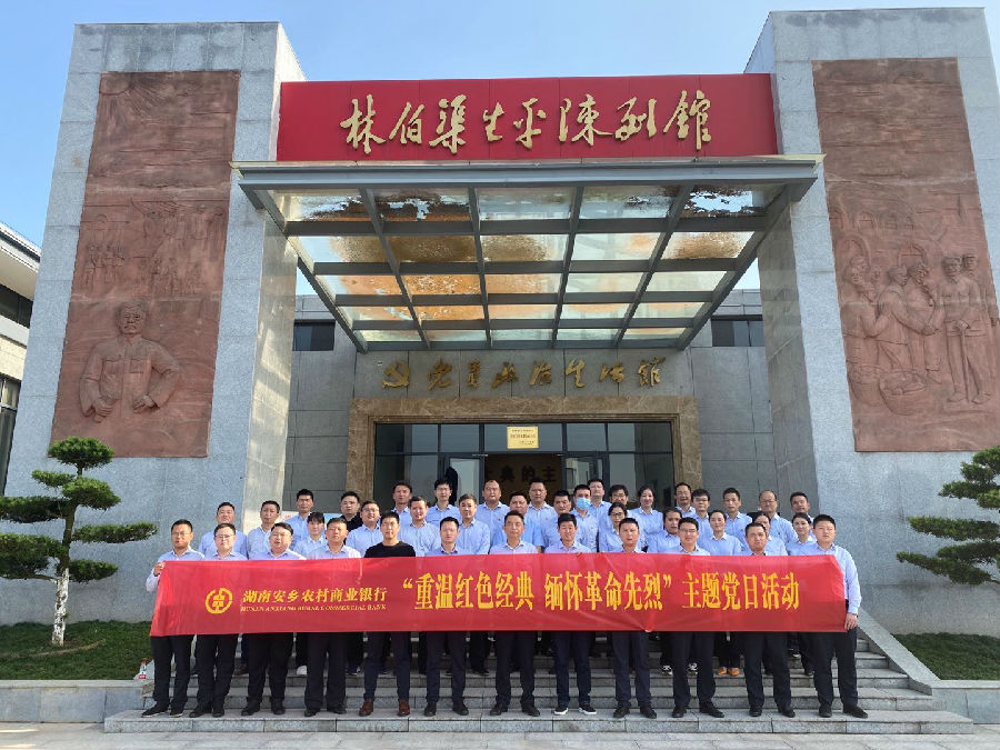 为进一步增强中层骨干的党性观念和宗旨意识,激发全员工作热情和凝聚力、战斗力,10月23日,安乡农商银行组织班子成员、基层党支部书记、支行行长、部室经理共43人前往临澧县林伯渠故居开展“重温红色经典、缅怀革命先烈”主题党日活动。
