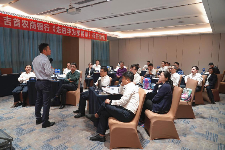 学习开始前,党委书记、董事长郑崇武代表该行发表了开班致辞。他指出,华为作为中国企业的标杆,其先进的管理理念值得我们思考、探讨与学习,此次的学习参访可谓是“恰逢其时”,我行全行员工刚完成《华为三部曲》的学习阅读,此番学习更加能直观感受到华为“以客户为中心”的管理理念,希望所有参训人员能珍惜此次来之不易的机会,通过培训切实提升自身管理水平和综合素质,为吉首农商银行的持续发展做出更大的贡献。
