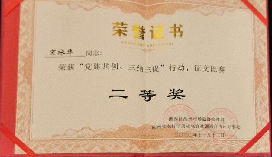 在征文比赛中,永顺兴华农牧有限责任公司负责人李兴华,荣获征文比赛一等奖;永顺农商银行员工宋冰华荣获征文比赛二等奖;永顺县市场监督管理局员工杨金玲荣获征文比赛三等奖。