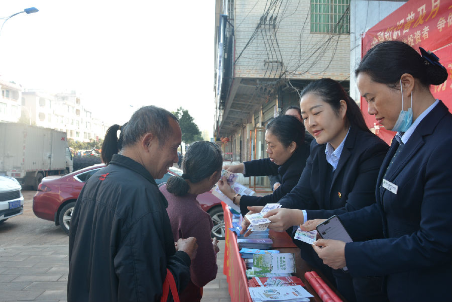 2020年版第五套人民币5元新版纸币已于2020年11月5日正式发行。为广泛宣传2020年版第五套人民币5元纸币基础知识,2020年11月12日,在人行嘉禾县支行的统一部署下,嘉禾农商银行、农业银行、长沙银行、中国邮储银行等县内金融机构联合举办了“人民币知识宣传进社区”的主题宣传活动,普及宣传人民币等金融知识入社区、进农户。