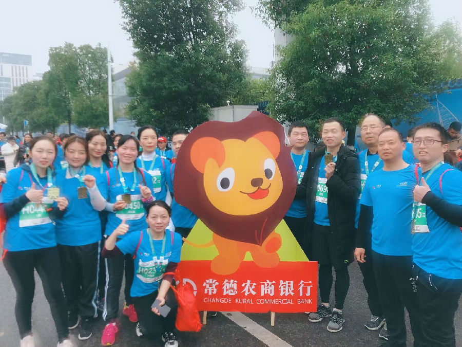 比赛开幕,在“德马”入场赛道上,该行参赛员工高举“常德快贷 快人一步”宣传标语及带有行名logo的“快贷小狮子”宣传牌,以整齐的队列、饱满的精神,展现了农商行积极、阳光的精神风貌。鸣枪开赛,运动健儿们无惧寒风冷雨,积极投身于奔跑的人潮中。长跑比赛,既是意志的磨炼,也是心灵的洗礼。“突破自我,就能创造奇迹”“终点在心中,再苦再累,也能坚持下去”“科学运动,健康生活”……跨越终点之后,员工们各有感悟。“超越不了选手,但是超越了自己。今年的半马成绩2小时14分32秒,比去年快了近4分钟”,年近6旬的老员工选手杨忠元在完成半程马拉松比赛后,谈起了自己的感悟。杨忠元已连续三年坚持参加“德马”半马比赛,每次都能跑完全程,并逐次提高成绩。他表示,明年还会继续参与。