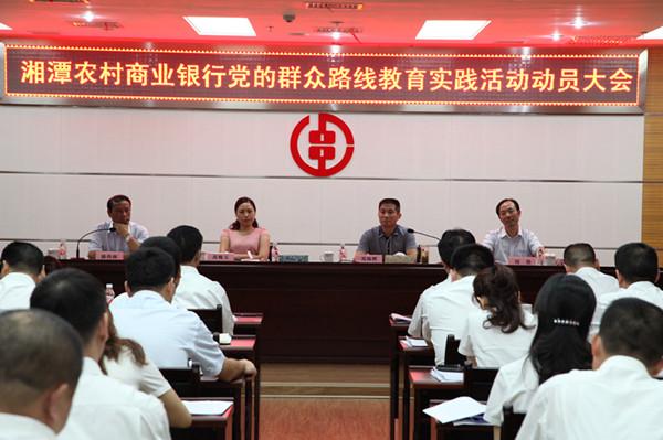 湘潭农商行负责人在动员报告中指出,开展党的群众路线教育实践活动是新时期推进党的建设的根本要求,是实现“两个百年”奋斗目标和实现中华民族伟大复兴的中国梦的必然要求,是保持党的先进性和纯洁性、巩固党的执政基础和执政地位的现实要求,更是推进我行科学发展、改善金融服务的必然要求。要求深刻认识开展这次活动的重要性、必要性、紧迫性,进一步统一思想、提高认识,进一步坚定信心、决心,进一步增强责任感、使命感和紧迫感,积极参与、大力推动、共同努力,以实实在在的行动和成效,让人民群众感受到教育实践活动给湘潭农商行带来的新变化新气象。