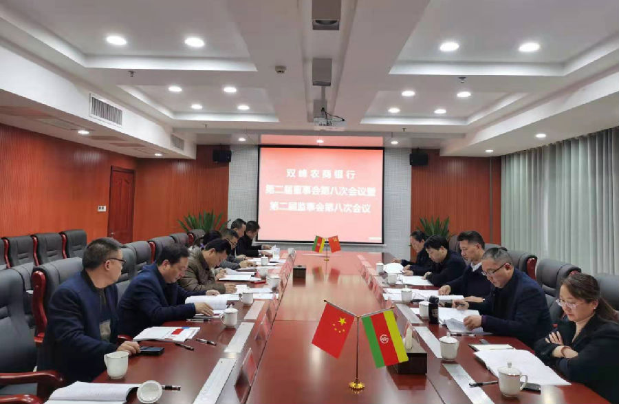 12月23日,双峰农商银行召开第二届董事会第八次会议暨第二届监事会第八次会议,公司全体董事、监事出席会议,机关相关部室经理列席会议。会议由党委书记、董事长(候选人)张勇峰主持。
