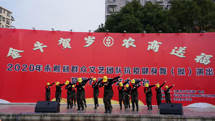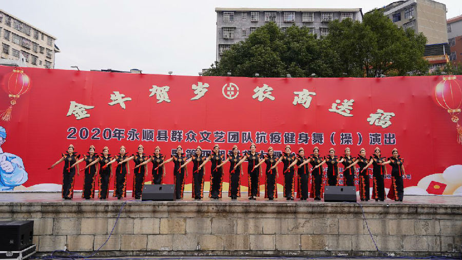 为丰富人民群众精神文化活动,提升2021年“金牛贺岁·农商送福”开门红活动热度,做好前期宣传预热,12月25日,由永顺县文化旅游广电局主办、永顺农商银行赞助、永顺县文化馆承办的“金牛贺岁·农商送福”2020年永顺县群众文艺团队抗疫健身舞(操)演出暨第四届群艺大舞台在永顺县湘潭文化休闲广场顺利举行。