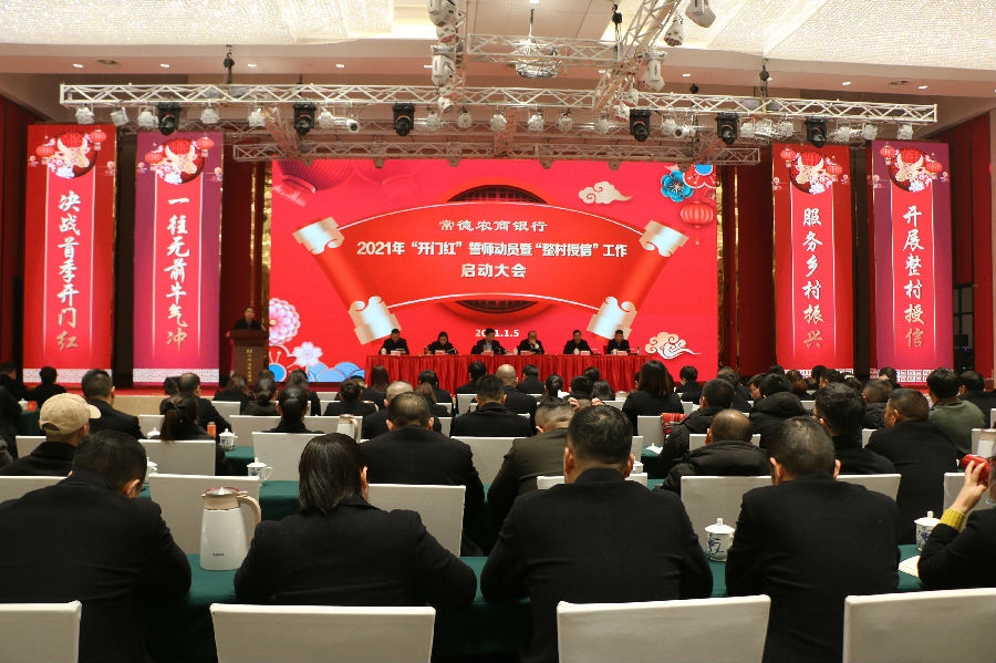 决战首季开门红,一往无前牛气冲。为确保2021年“开门红”竞赛活动顺利开展,打好新年“第一仗”,为全年各项工作开好局、起好步,1月5日上午,常德农商银行2021年“开门红”誓师动员暨“整村授信”工作启动大会隆重举行,行领导、中层骨干及信贷客户经理等共370余人参加会议。