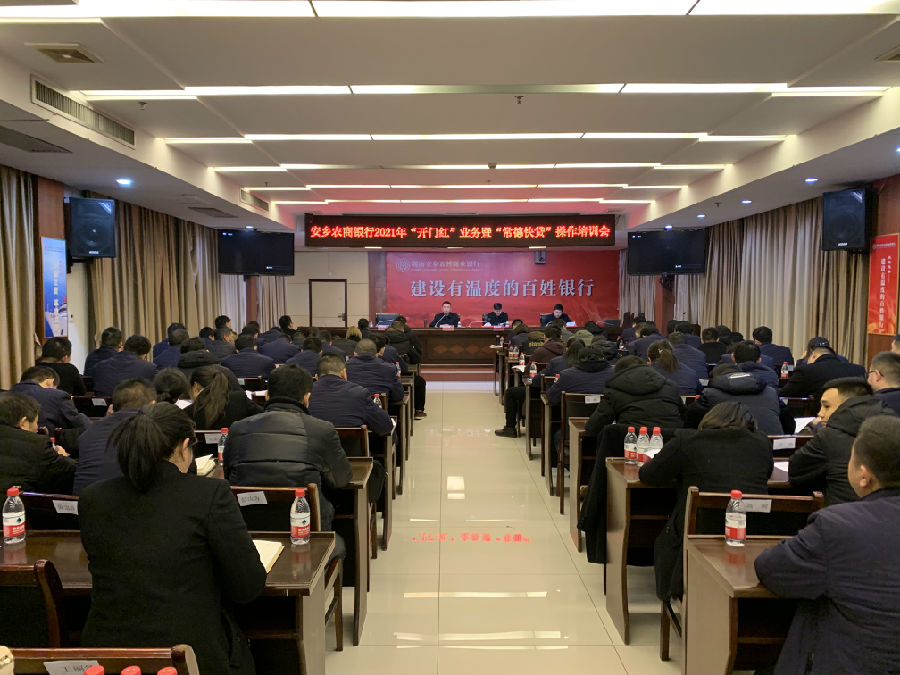 1月4日,安乡农商银行在六楼会议室召开2021年“开门红”营销暨“常德快贷”操作培训会,全面部署2021年一季度“开门红”工作。总行班子成员、风险总监、各部室全体员工,各支行正副行长、委派会计、信贷客户经理共120人参加会议。