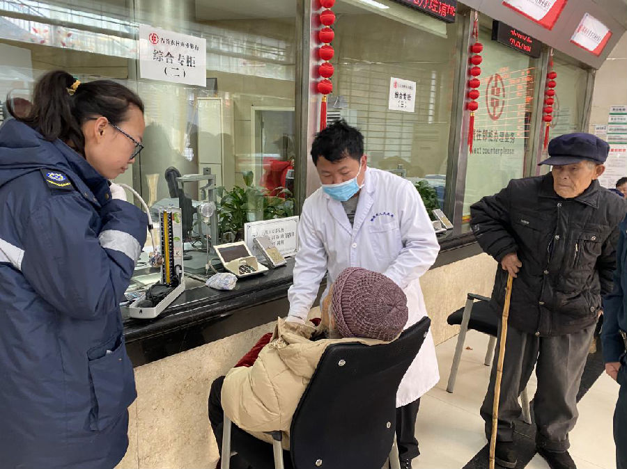该支行工作人员询问了龙奶奶的老伴后了解到龙奶奶患有胆囊炎,今年已经89岁了,支行行长张林莎一边询问病人的家属是否可以联系到家里年轻人,一边安抚客户暂时前往邻近网点办理业务,大堂经理维持现场秩序,想办法联系病人其他家属。