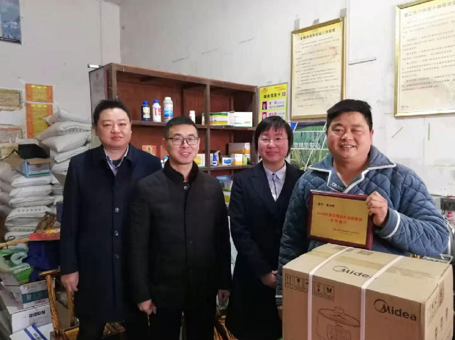 根据安排,电子银行部组织助农商户所在的管理支行对其辖内助农商户进行节前走访,为感谢助农商户过去一年的用心服务,为其送去节日慰问品。其中,对月均交易量排名前十位的商户,特别制作“2020年度优秀助农金融服务合作商户”表彰牌,并给予一定的经济奖励,以资鼓励。