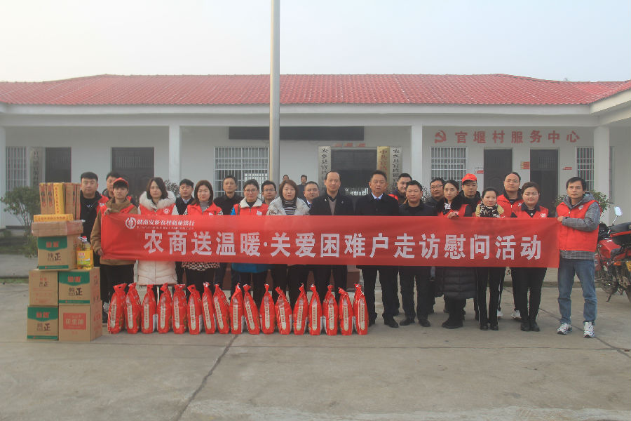 1月29日,安乡农商银行启动“农商送温暖·关爱困难户”走访慰问活动,总行党委班子成员、联点部室经理与各支行负责人一同深入到全县12个乡镇171个村(社区),为832名困难户送上春节生活物资。