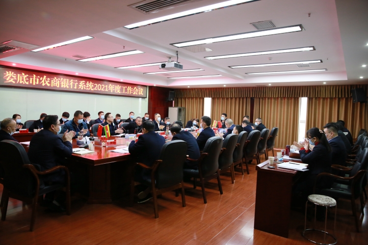 2月1日,娄底办事处组织召开全市农商银行系统2021年工作会议。办事处党组书记、主任朱韶光做了题为《立足新阶段 贯彻新理念 全力构建全市农商银行高质量发展新格局》的主题报告,办事处党组成员、副主任黄益民做总结讲话,会议由党组成员、副主任、纪检组长周连华主持。办事处各科室负责人、各农商银行班子成员参加了会议。