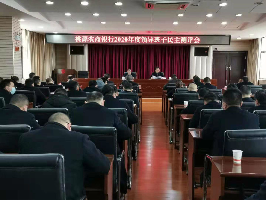 为准确掌握党委班子2020年度履行岗位职责情况,2月2日,桃源农商银行召开2020年度党委班子民主测评会。常德办事处考核小组、该行班子成员、协理员,各支行负责人及机关正副经理共计70余人参加会议。