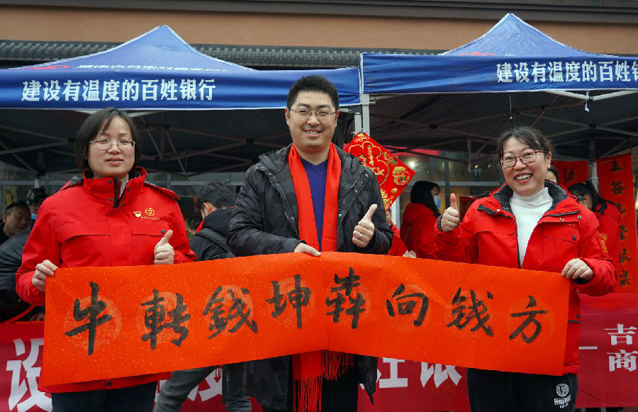 托了人们对新的一年的美好祝愿。手写春联更是笔尖上的传统年味儿,无联不成春,有联春更浓。1月31日,吉首农村商业银行邀请田冰、吴正义、田小琴等三位州内知名的书画家,一起来到湘西最大的农贸市场----乾州农贸市场,与赶场的群众迎春接福,共赴一场“书法”盛宴。