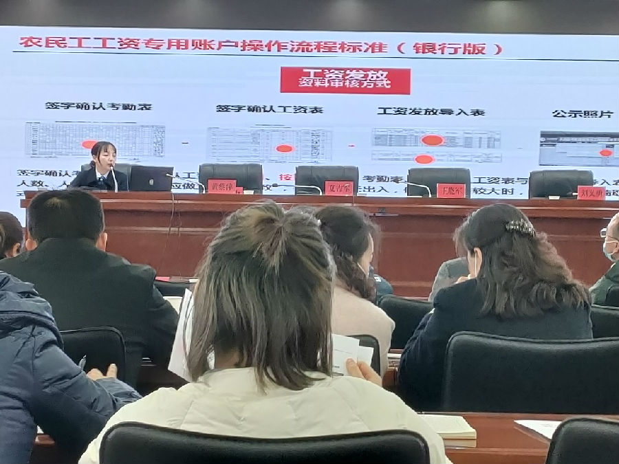 近日,常德市农民工工资专户情况通报暨培训会议在市人行15楼会议室召开,市人社局、市人民银行、市住建局、市交通局、市水利局,市各级劳动保障监察机构、各县市人民银行及12家开办农民工工资专户业务的银行业机构参加会议。会上,常德农商银行作为特邀单位,对《农民工工资专用账户操作流程标准》进行了推广推介。