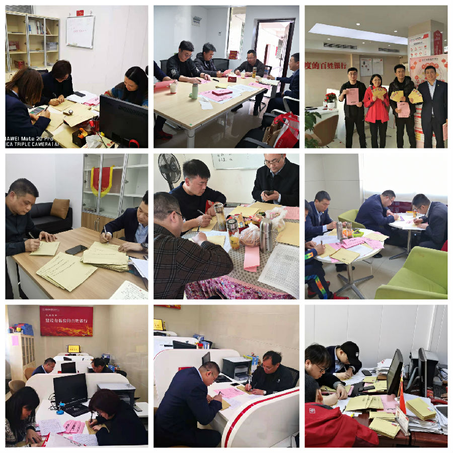 “2021年春节期间,请严格按照防疫要求,做好防护措施,保护好自己,尽量不要前往人群密集场所、不要参加集体活动”……这份永兴农商银行的问候信句句饱含关心、字字体现真情。19日,我行党委班子组织召开专题会议安排为外出创业老乡们寄问候信工作,散会后,行党委领导及机关干部职工便集体下乡,分别去往挂片支行,带领支行员工一起折信笺、填地址、贴邮票,大家流水作业,每个部室、支行都充分发挥主观能动性,创新开展寄信工作,有的将客户经理名片夹在信笺内、有的亲笔写上联系方式,工作热火朝天,大布江支行在与乡政府汇报的过程中,得知政府现在正组织给外出创业、工作的老乡们寄送禁毒公开信,便一同开展寄信工作。