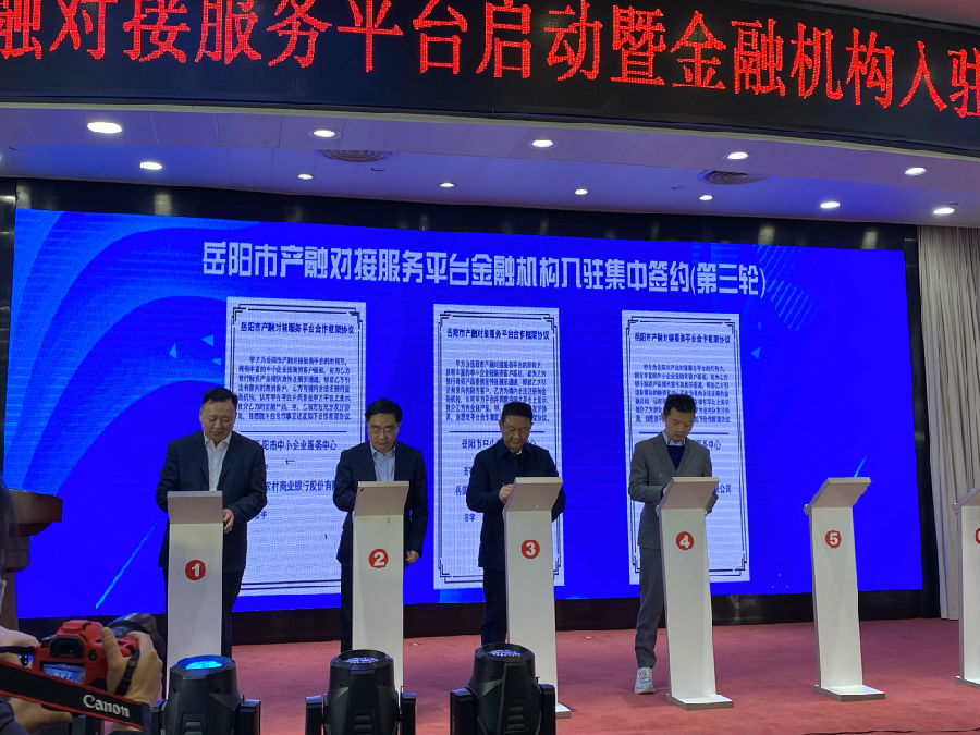 3月2日上午,岳阳市举行产融对接服务平台启动仪式暨金融机构入驻平台集中签约仪式,这是全省首个市州层面投入建设的产融对接服务平台。岳阳农商银行董事长李进代表该行与产业对接服务平台和有融资意向的企业进行现场签约。