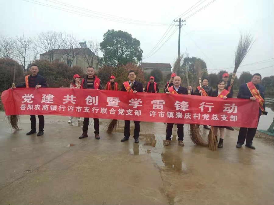 3月5日,岳阳农商银行许市支行联合党支部携手许市镇崇庆村党总支部顺利开展了党建共创暨学雷锋行动。