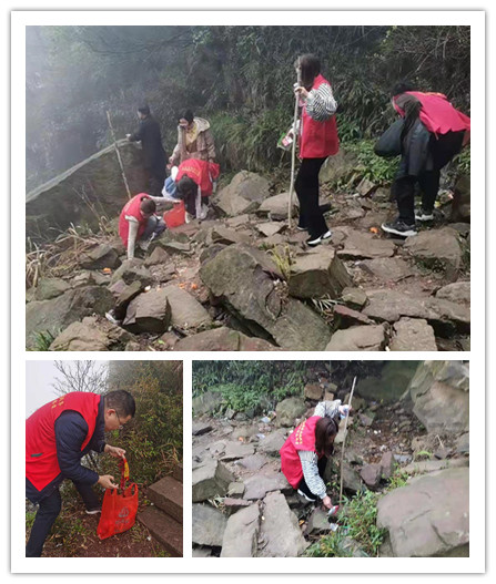 沿途捡拾垃圾,传递文明登山意识和环保理念