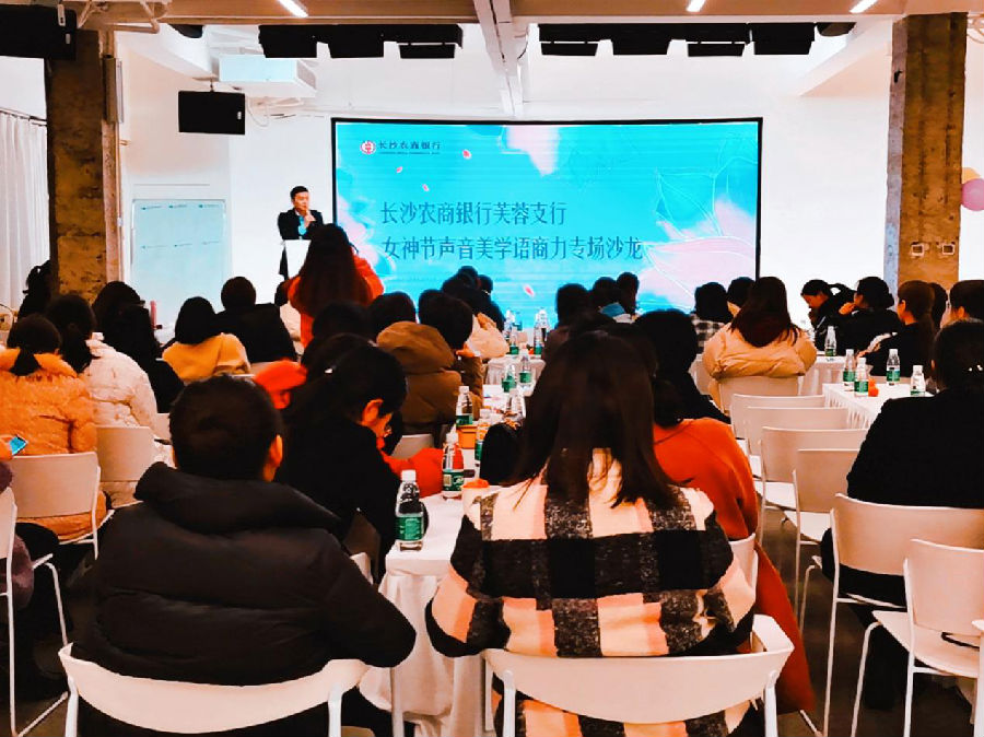 3月5日,芙蓉支行举办女王节员工福利沙龙活动,共有80余名女性员工齐聚活动现场。活动邀请《气质声音语商课》创始人导师引导大家进行了一场妙趣横生、引人入胜的沙龙互动——《气质声音美学之语商》,针对银行业职场女性讲授了提升个人气质、提升谈吐气质以及提升人际交往的能力等方面内容,大家认真聆听,踊跃互动,整整两个小时的活动始终洋溢着欢快喜悦的节日气氛。