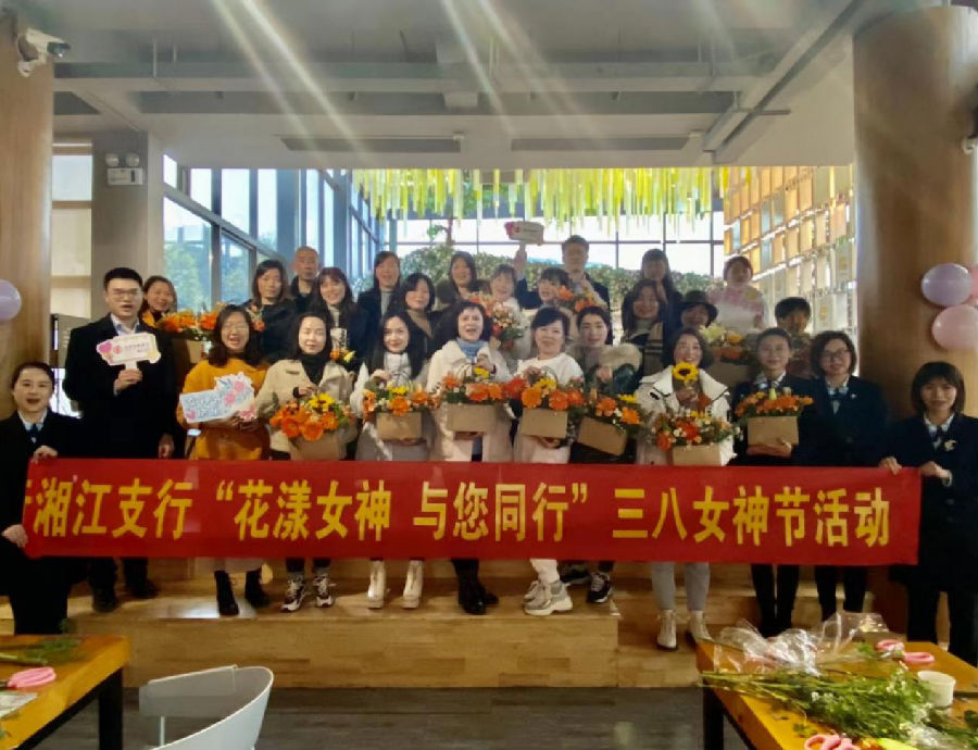 3月8日一大早,湘江支行的工会委员们就分批次将节日礼物送到了每一位的女员工手中,让女员工倍感温馨,充满力量。当天下午,还举办了以“花漾女神、与您同行”为主题的插花艺术课堂。由花艺老师带领大家开展了温馨而美好的插花活动,在这个特殊的节日里拥有了一段美好愉悦的体验。