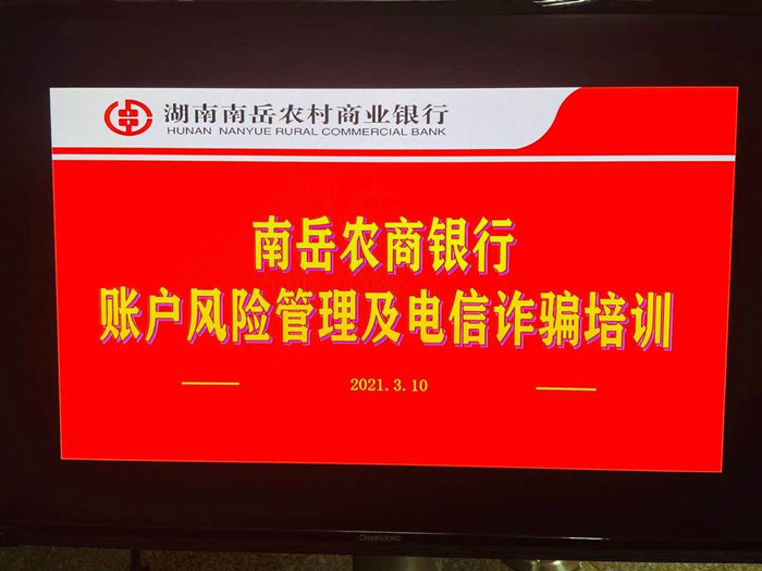 为进一步提升员工的风险防范能力,严控金融风险,践行南岳农商银行党委“把思想统一到从严治行、防范风险上来”的指示精神,3月10日,我行组织全体内勤、支行行长在四楼会议室举行了算账户风险管理与电信诈骗防范专题培训。