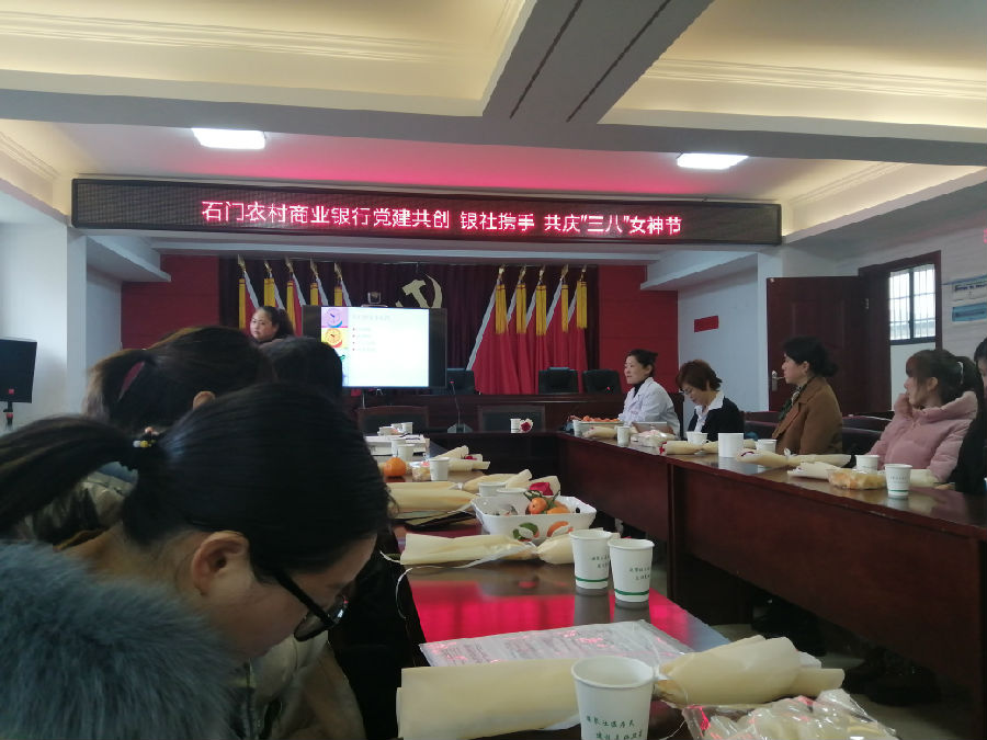 阳春三月,璀璨芳华。为丰富主题党日活动形式,进一步加强银社联系,3月8日上午,石门农商银行分管领导带领支行员工到石门县二都街道卫星社区开展“党建共创 银社携手”共庆“三八”女神节活动。