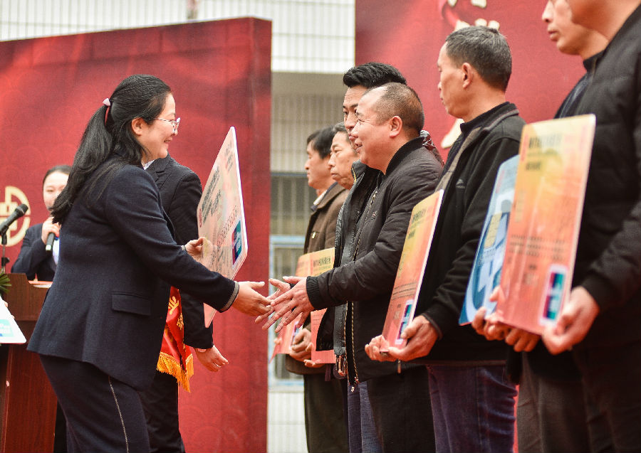 发行仪式上,县人民政府副县长李玉芳对永顺农商银行支持县域经济发展、助力脱贫攻坚等工作给予了充分肯定。她指出,永顺农商银行要以此次发行仪式为契机,不断丰富完善特色惠农金融产品和服务,持续优化农村金融环境,努力实现金融支持更加有力、金融惠民更加有为,为全面推进乡村振兴,巩固脱贫攻坚成果、建设现代化新永顺提供强而有力的金融保障。随后,为前期摸底的石堤镇产业致富带头能人、乡贤、个体工商户及农民专业合作社等8名代表进行了第一批“福祥·乡村振兴卡”现场授信、授卡。