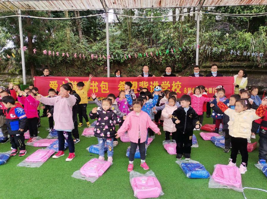 3月17日,永顺农商银行列夕支行到芙蓉镇列夕学校幼儿园举行“爱心装进书包 希望背进学校”书包捐赠仪式,为在校学生捐赠书包86个。
