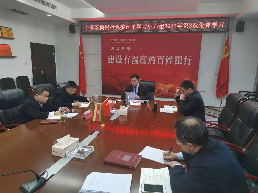 为深入贯彻落实省联社关于党史学习教育的安排部署,扎实推进党史学习教育,3月24日下午,吉首农商银行党委理论学习中心组织开展2021年第三次集体学习暨党委“学史明理”专题研讨会。吉首农商银行党委班子成员、党委办及党群工作部负责人参加学习。会议由该行党委书记、董事长郑崇武主持。