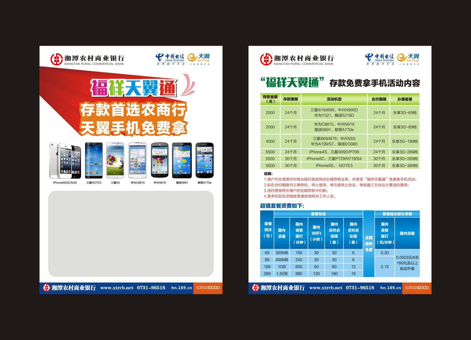 “存款是我的,利息是我的,手机也是我的,福祥天翼通的活动让我得到实惠啊”,近日在湘潭农商行某营业网点,顾客高兴的说出这句话。福祥天翼通是湘潭农商行和中国电信合作开展的以存款作为保证金监管,办理电信套餐送手机的业务。凡储蓄个人客户存入相应档次的定期存款额度,并选择同档次套餐消费计划,就可免费领取苹果,三星,华为等品牌手机。这样客户只需承诺在网时长按时缴纳套餐费用就获得了电信3G智能手机,并且在湘潭农商行存的定期还能获得相应的利息,一举三得。