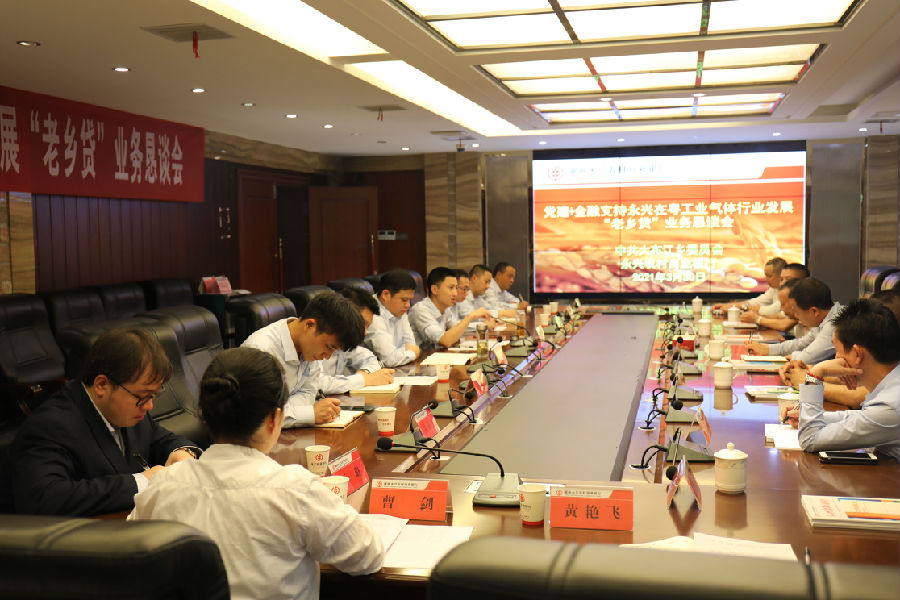 “小康不小康,关键看老乡”。受邀的曹晓峰等6名商户为永兴县东部山区在广东一带地区从事工业气体行业的优秀领军人物。因资源匮乏、交通不便,近年来,东部山区七甲、大布江等乡镇大多数的青壮年居民都外出务工或创业,其中约有60%的人群散布在广东省从事工业特种气体行业,且行业经营发展稳定,涉及的产业链十分广泛,具有一定的发展规模,集聚性和区域性的在他乡形成了产业特色。永兴农商银行为加大乡村振兴力度,实现政银商共同发展,不断探寻业务转型新路径,以东部山区村民在外发展的工业气体行业为试点,召开本次业务发展恳谈会,专门为外出发展工业气体行业的永兴老乡量身定做“老乡贷”系列信贷产品“旺气贷”,精准匹配商户需求,直接解决异地老乡们在创业经营中的融资难题,传递来自家乡农商银行的支持和温暖。