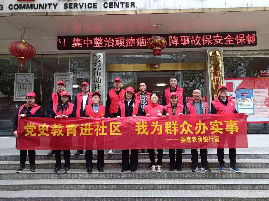 3月26日,娄底农商银行践行“我为群众办实事”活动,在总行党委组织下,机关第一党支部联合机关第二党支部深入花山办事处山塘社区开展“党史教育进社区,我为群众办实事”主题党日活动,发挥党员在服务百姓为民办实事,助力“干净整洁”城市创建。