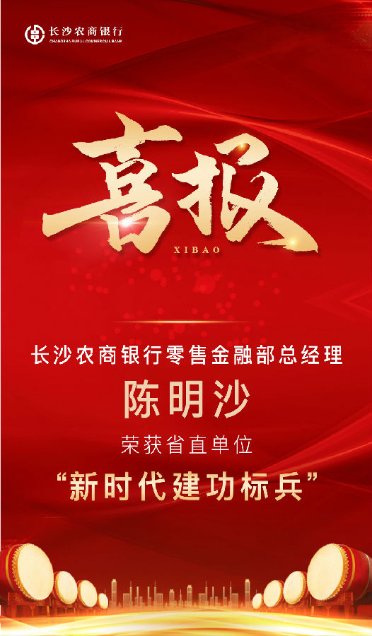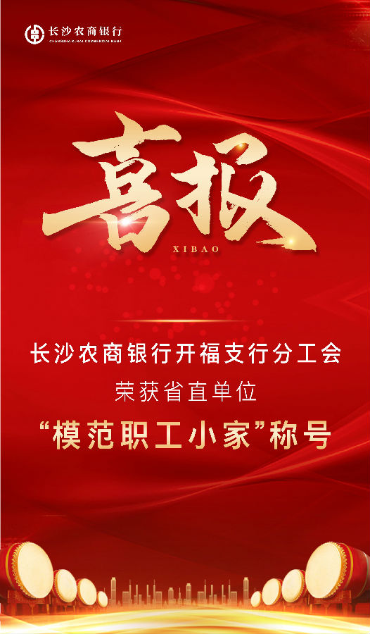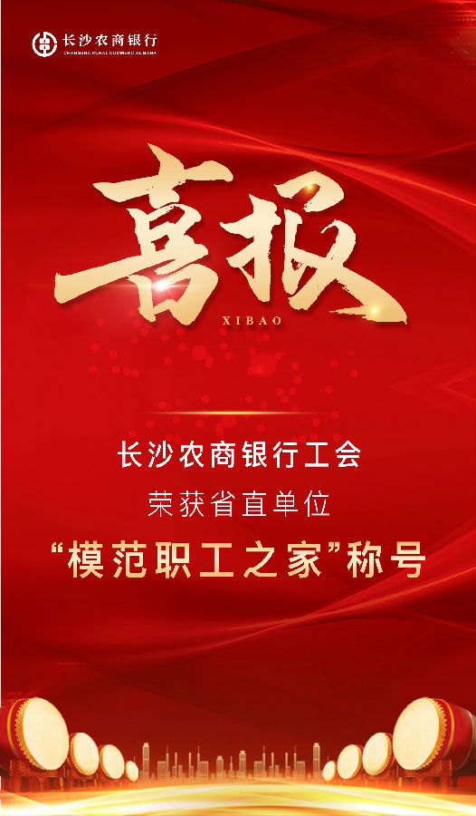 热烈祝贺长沙农商银行工会荣获省直单位“先进单位”、“模范职工之家”称号;长沙农商银行开福支行分工会荣获省直单位“模范职工小家”称号;长沙农商银行零售金融部总经理陈明沙荣获省直单位“新时代建功标兵”称号。