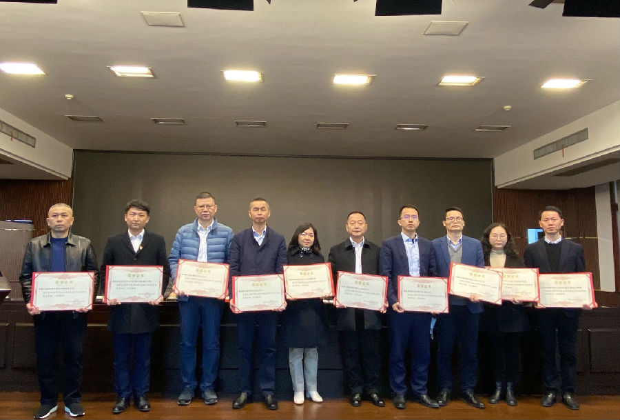 岳阳农商银行党委委员、副行长余乐(右四)代表我行领奖