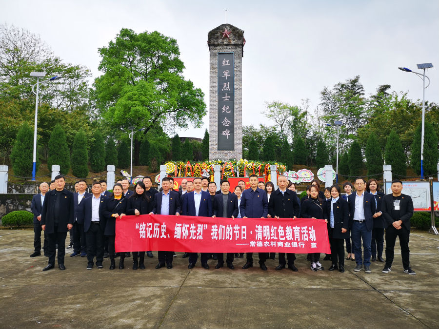 为深入开展党史学习教育,引导全行党员干部牢记初心使命、坚定理想信念,在传统节日清明节期间,常德农商银行在桃源浯溪河大捷旧址开展了“铭记历史 缅怀先烈”为主题的红色教育活动,行领导、全行党支部书记共计50人参加了活动。